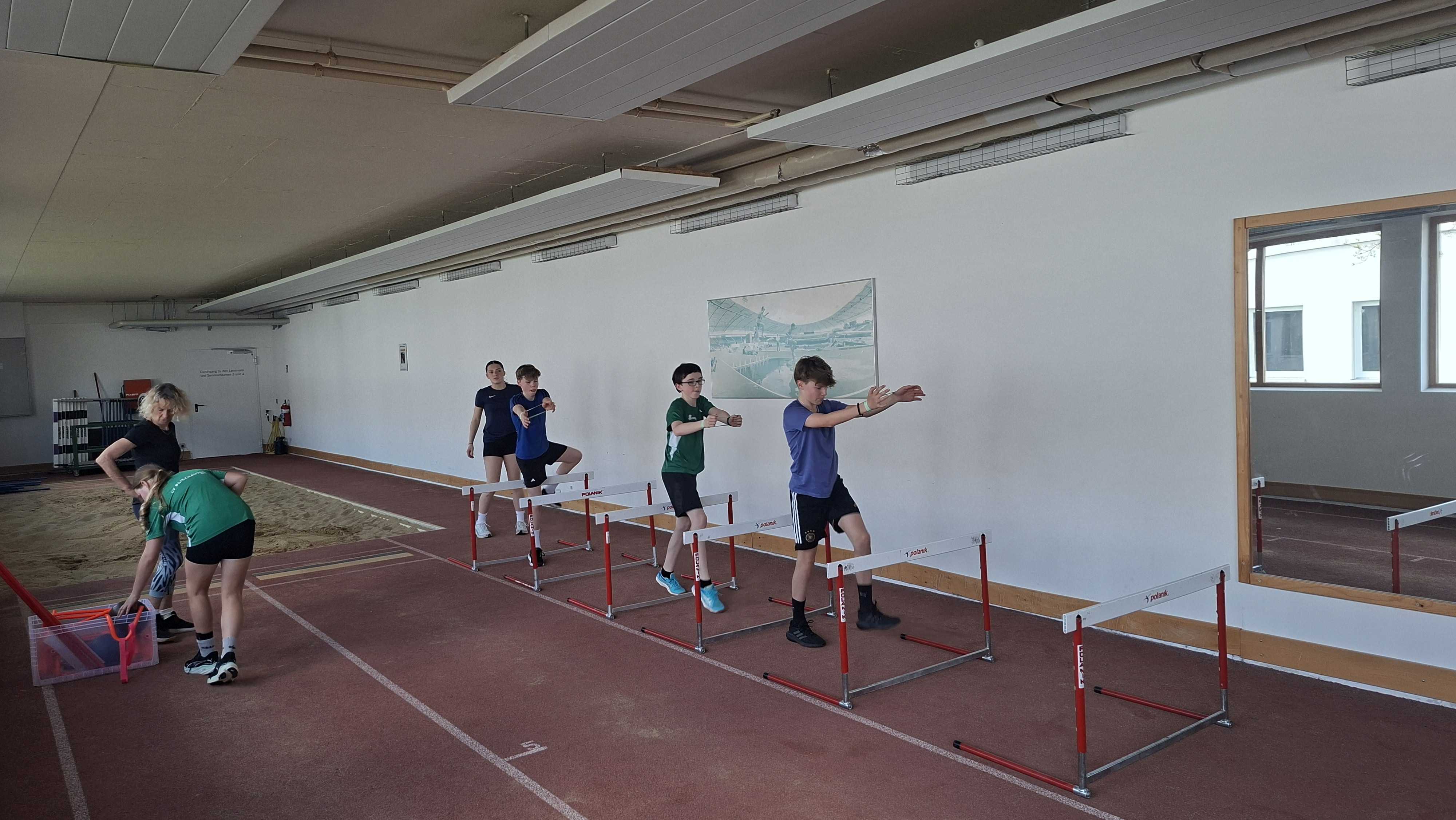 Zum Einstieg haben wir uns in der Halle erstmal mit Stabi und Mobi aufgewärmt. Danach ging es mit Weitsprung weiter. Für den Speerwurf sind wir dann noch ins Stadion gefahren.